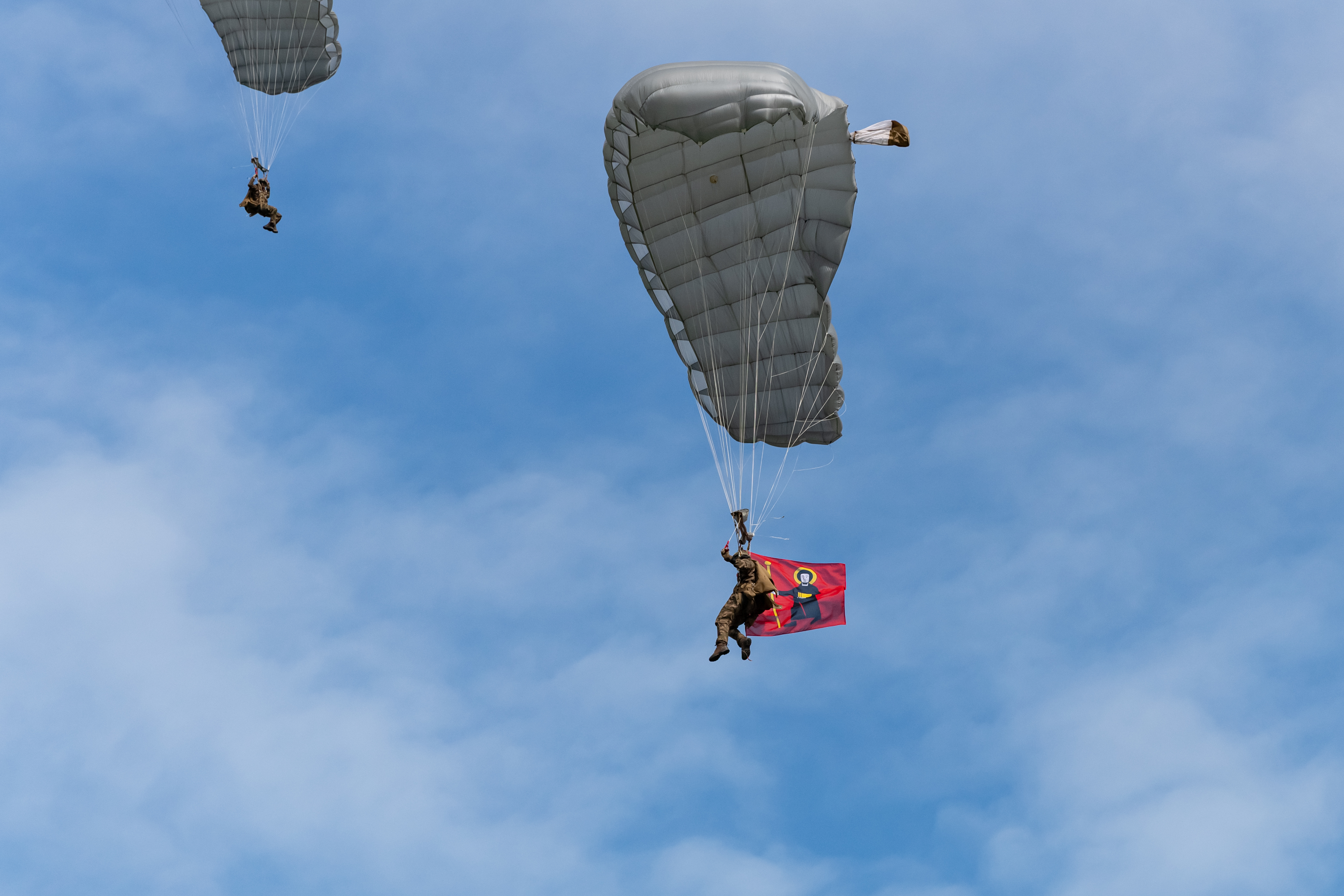 Das ESAF 2025 Glarnerland+ ist eröffnet. OK-Präsident Jakob Kamm sticht das Fass an und begrüsst offiziell zum Eidgenössischen Schwing- und Älplerfest 2025. Im Bild: Die Fallschirmaufklärer der Armee mit der Glarner und Schweizer Fahne.